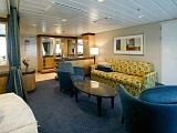 В каюте: 2 спальни с двумя кроватями, поставленные вместе или раздельно, 2 ванные комнаты (одна c ванной,другая с душем), гостинная с диваном, телевизор, телефон, сейф, фен, кондиционер, мини-бар, консъерж сервис