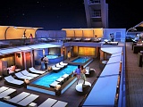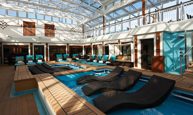 В каюте: 1 большая кровать, сейф, телевизор, джакузи, ванная комната, фен, мини-бар. Для проживающих: каюты обслуживаются дворецким, бесплатно доступ Thermal Spa Suite, доступ в зону Courtyard c частным бассейном, доступ на частную палубу для загара Posh Beach Club, приоритетное бронирование столиков в альтернативных ресторанах. Возможно размещение до 2 пассажиров.