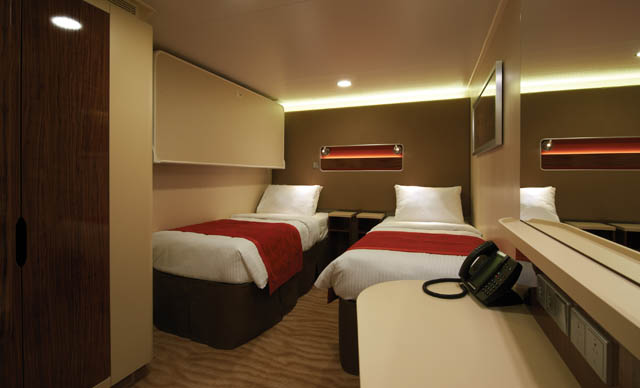 В каюте: 2 кровати, которые быть конвертированы в одну, сейф, телевизор, ванная комната, кондиционер, фен, мини-бар. Возможно размещение до 2 пассажиров.