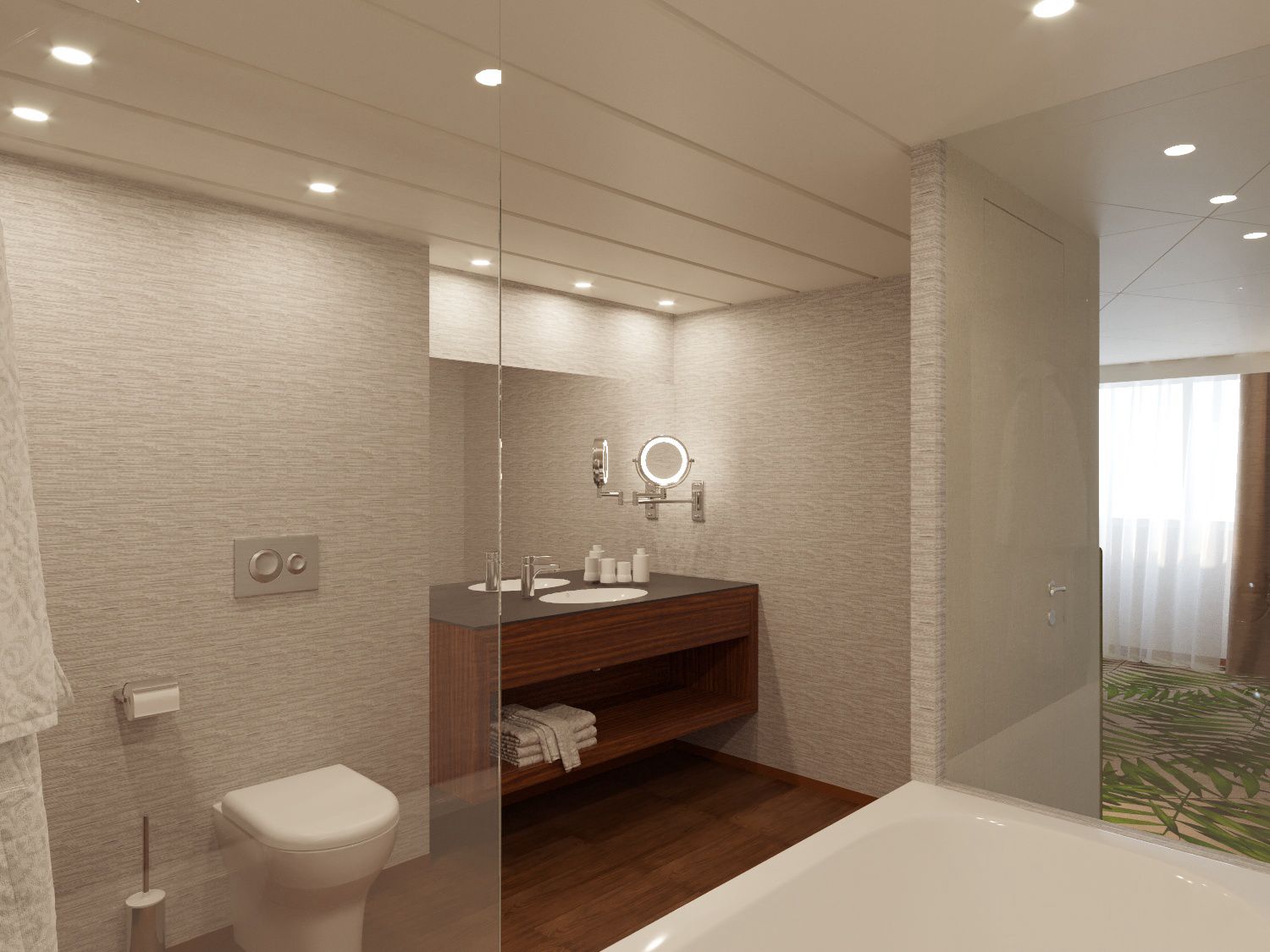 Каюты увеличенной площади с авторским интерьером. В каюте: панорамные окна, спутниковое
