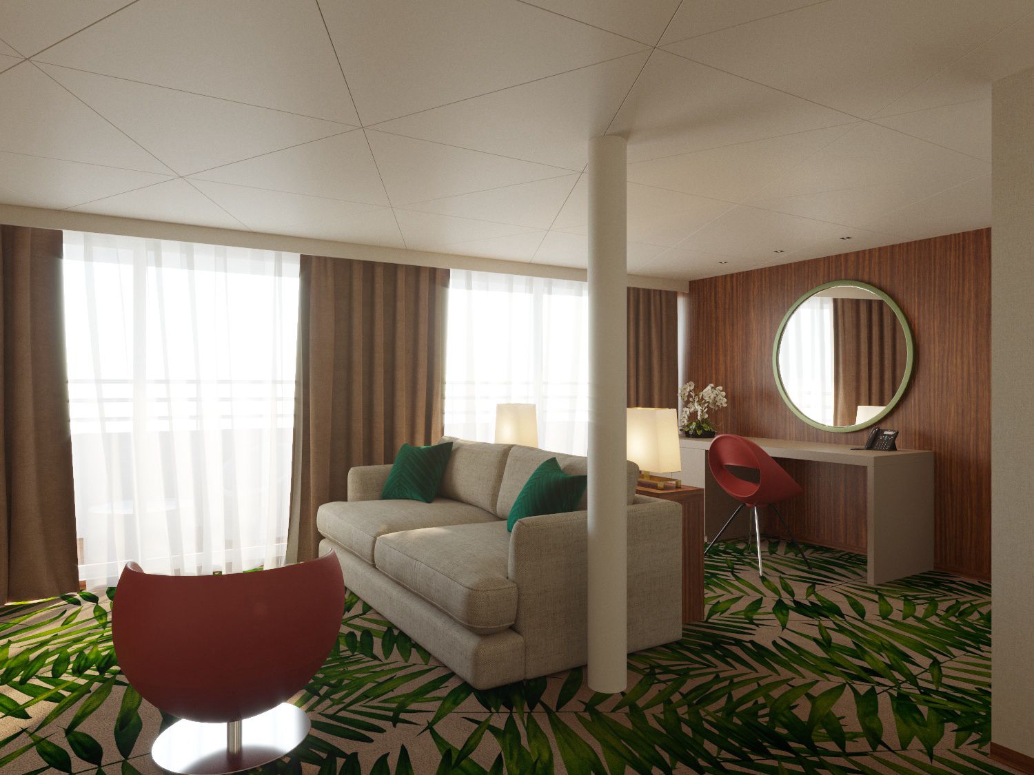 Авторский дизайн от Guido de Groot. Просторные каюты с двуспальной кроватью