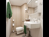 Во всех каютах: шкаф для одежды, радио, кондиционер, душ, санузел, обзорное окно,