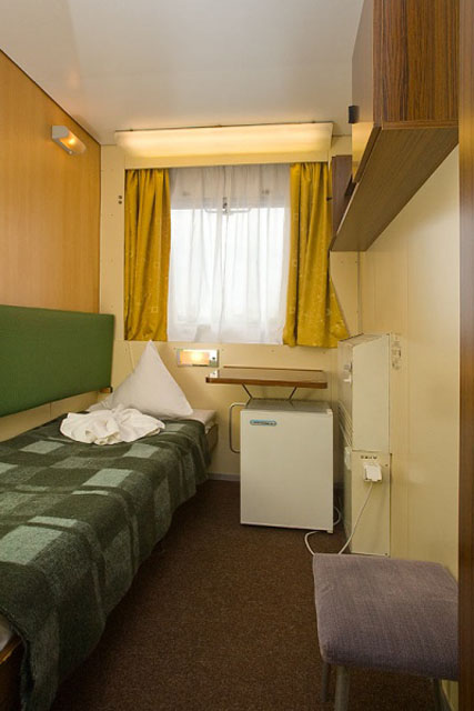 Для размещения туристов предусмотрены 1-, 2- и 3-х местные каюты на шлюпочной, средней, главной и нижней палубах. Имеются каюты повышенной комфортности - люкс и полулюкс. Каждая каюта оснащена дущем, туалетом, умывальником, кондиционером, холодильником, телевизором, внутренней телефонной связью.