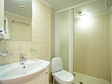 Каюты. Для размещения туристов предусмотрены 2- , 3-х и 4-х местные каюты на шлюпочной, средней, главной и нижней палубах. На шлюпочной палубе находятся каюты повышенной комфортности –«Люкс», «Полулюкс» и категория «Л». В каютах «Полулюкс» и «Л» категорий имеется балкон. В каждой каюте: санблок (умывальник, душ, туалет), телевизор, регулируемое централизованное кондиционирование, телефон и фен.